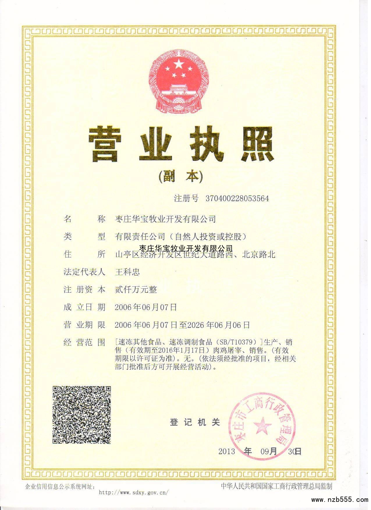首頁 > 榮譽(yù)資質(zhì) > 棗莊華寶牧業(yè)開發(fā)有限公司