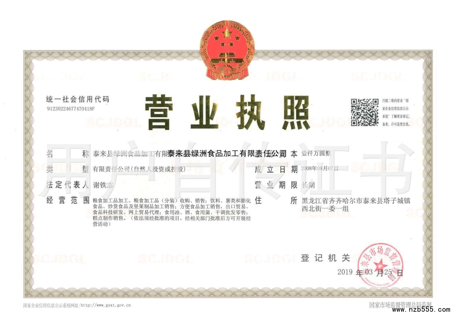 | 發(fā)證機(jī)構(gòu): | 泰來縣市場監(jiān)督管理局 | 發(fā)證時間 : | 2019-03-25 |
