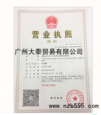 首頁 > 榮譽(yù)資質(zhì) > 廣州大泰貿(mào)易有限公司
