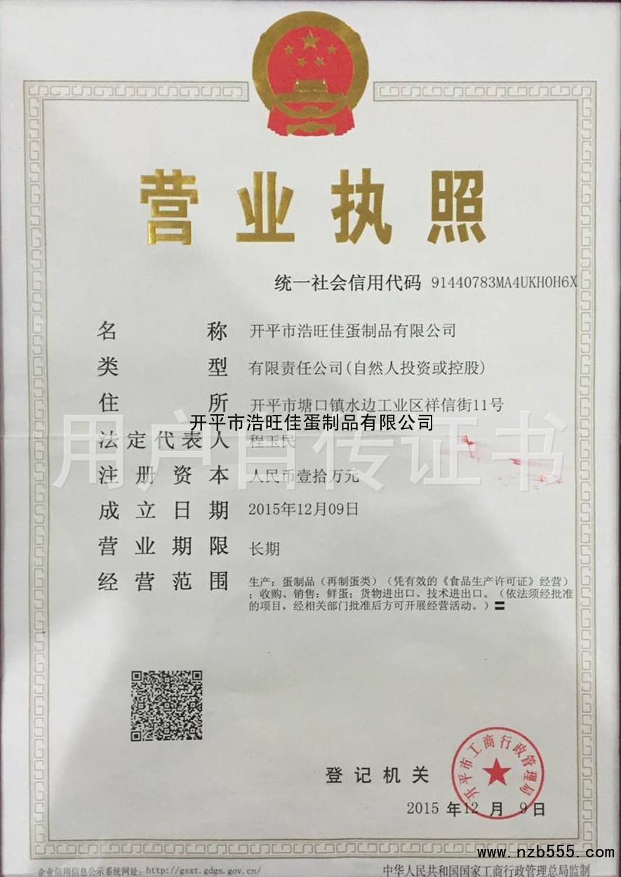 榮譽(yù)資質(zhì) 開平市浩旺佳蛋制品有限公司