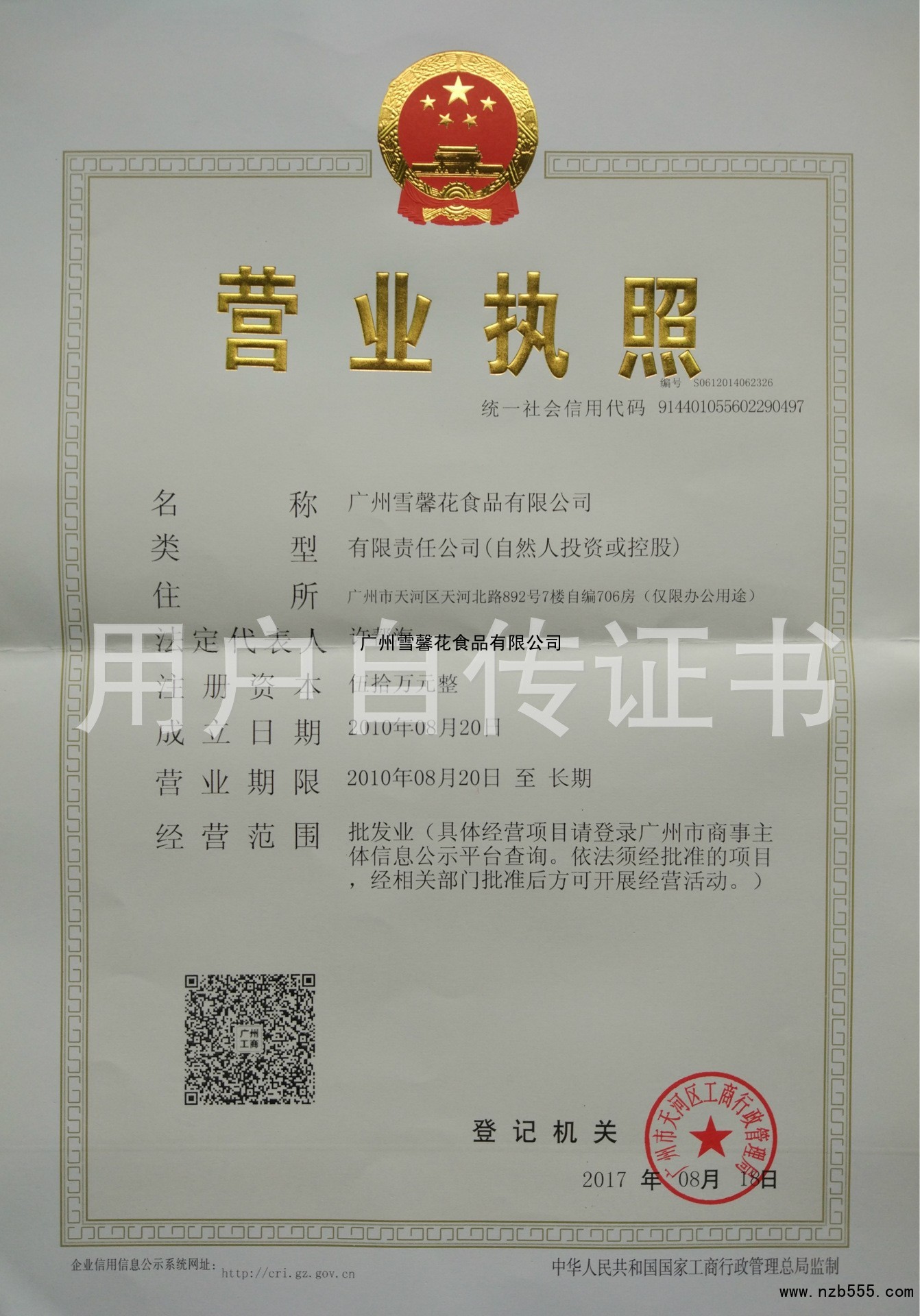 | 發(fā)證機(jī)構(gòu): | 廣州市天河區(qū)工商行政管理局 | 發(fā)證時(shí)間 : | 2017-08-18 |