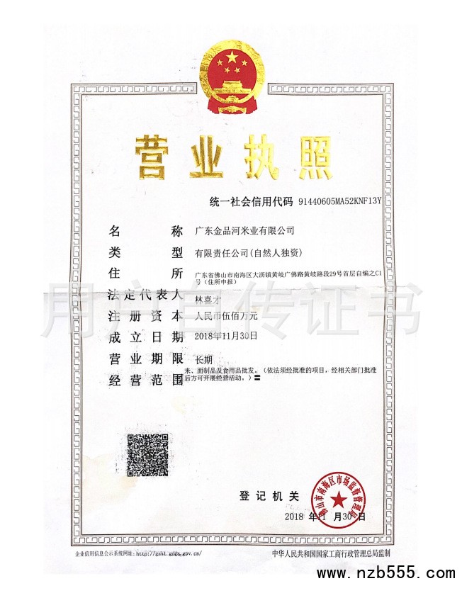 | 發(fā)證機(jī)構(gòu): | 佛山市南海區(qū)市場監(jiān)督管理局 | 發(fā)證時間 : | 2018-11-30 |