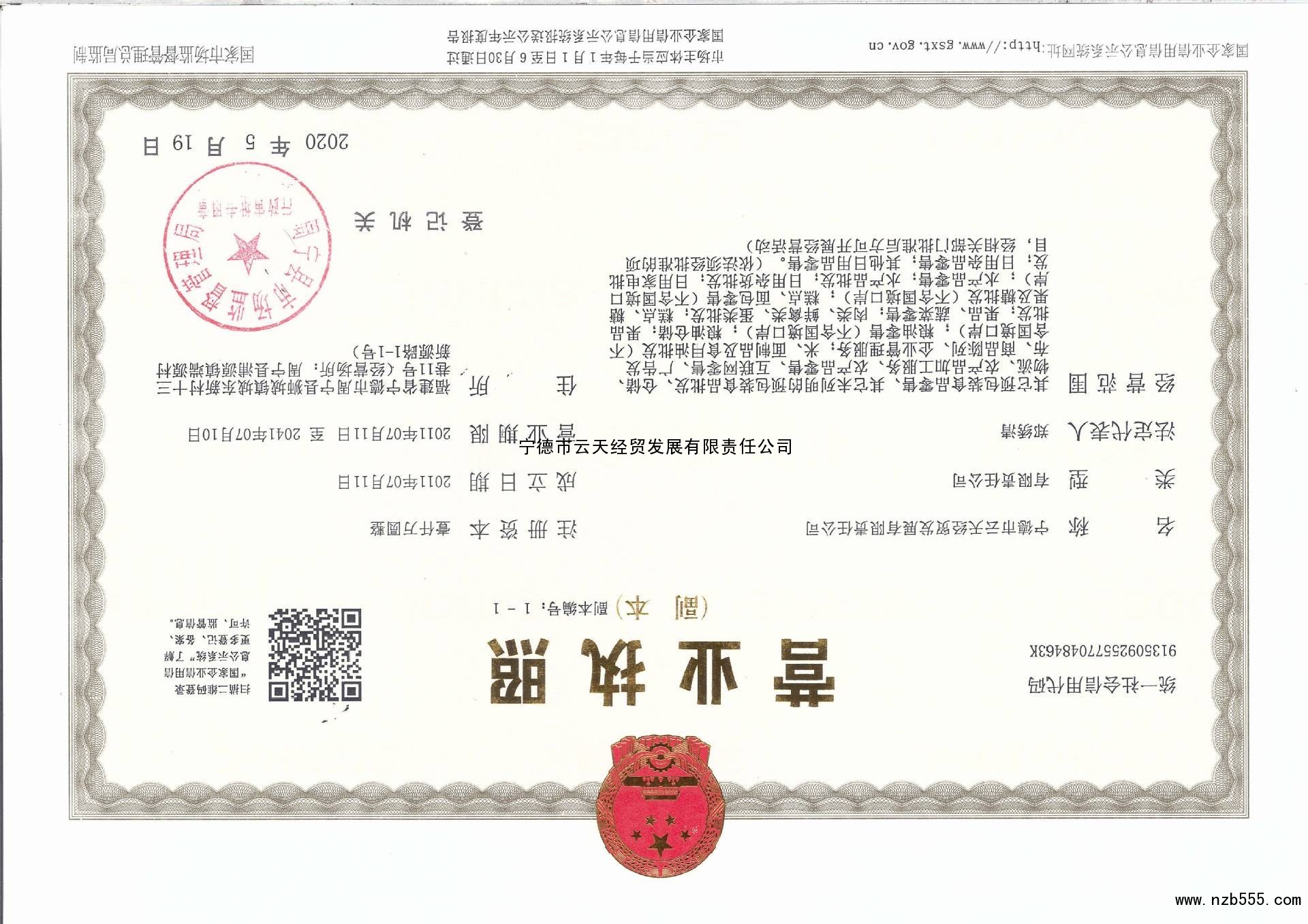 | 發(fā)證機(jī)構(gòu): | 周寧縣市場監(jiān)督管理局 | 發(fā)證時間 : | 2020-05-19 |
