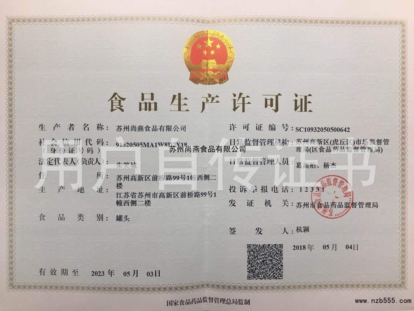 食品生產許可證(除乳制品、嬰幼兒配方乳粉、酒之外的生產許可證)