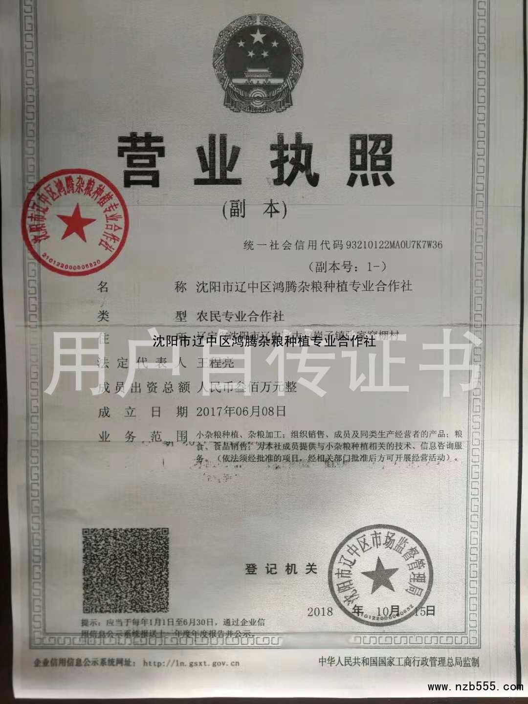 沈陽市遼中區鴻騰雜糧種植專業合作社