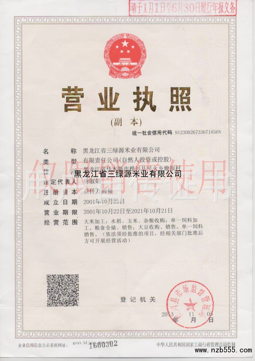 | 發(fā)證機(jī)構(gòu): | 樺川縣市場(chǎng)監(jiān)督管理局 | 發(fā)證時(shí)間 : | 2013-11-05 |