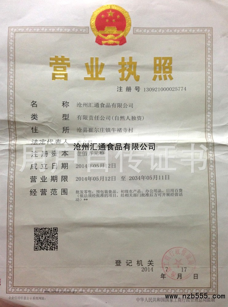| 發(fā)證機(jī)構(gòu): | 滄縣工商行政管理局 | 發(fā)證時(shí)間 : | 2014-07-17 |