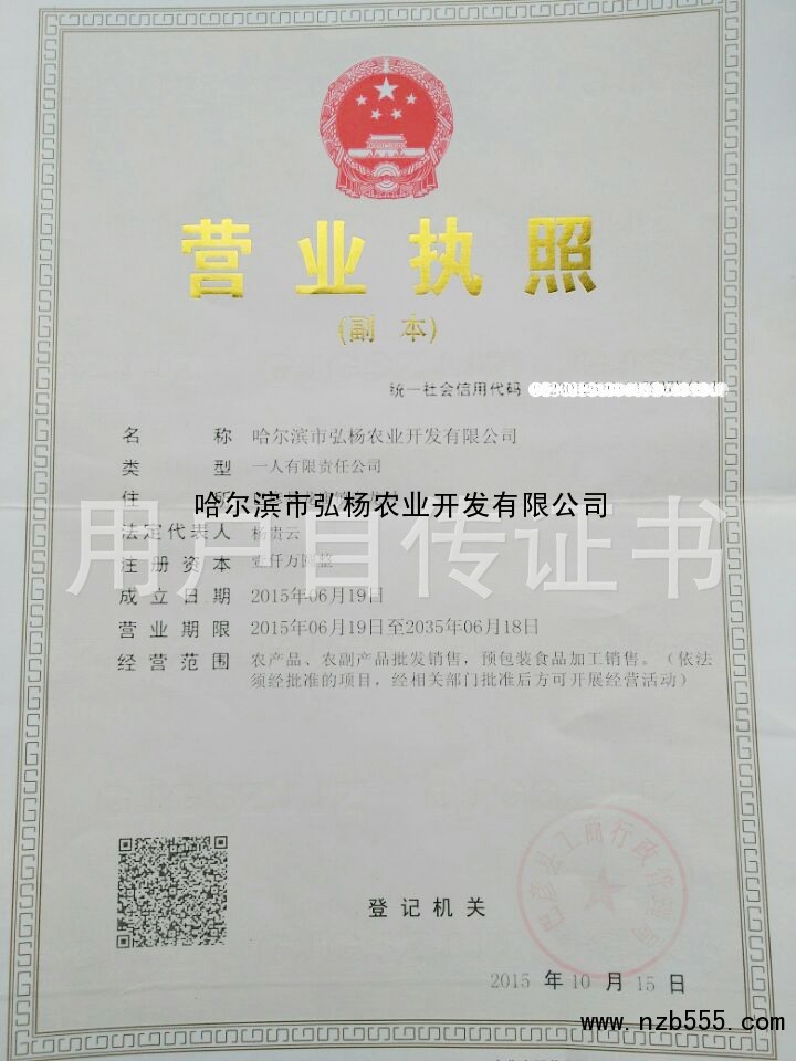| 發(fā)證機(jī)構(gòu): | 巴彥縣工商行政管理局 | 發(fā)證時(shí)間 : | 2015-10-15 |