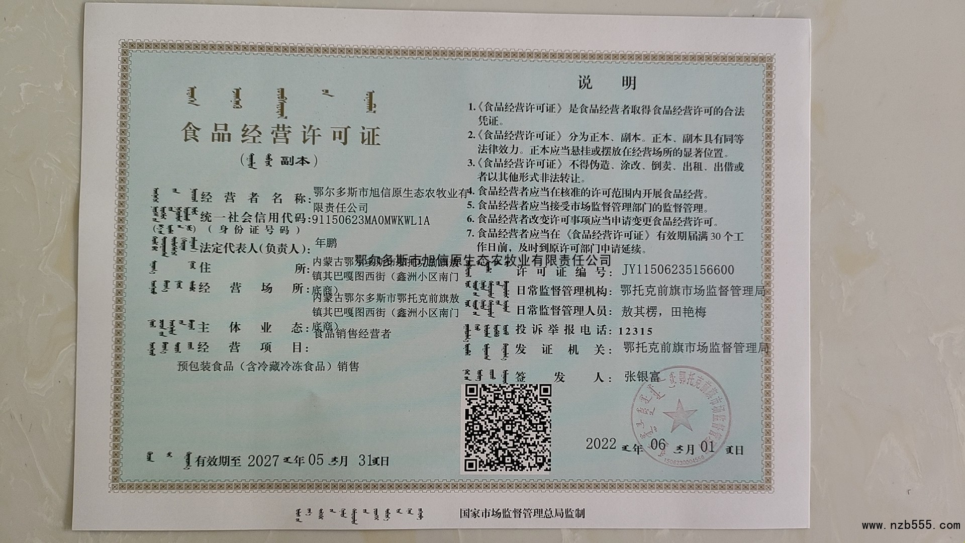榮譽(yù)資質(zhì) 鄂爾多斯市旭信原生態(tài)農(nóng)牧業(yè)有限責(zé)任公司