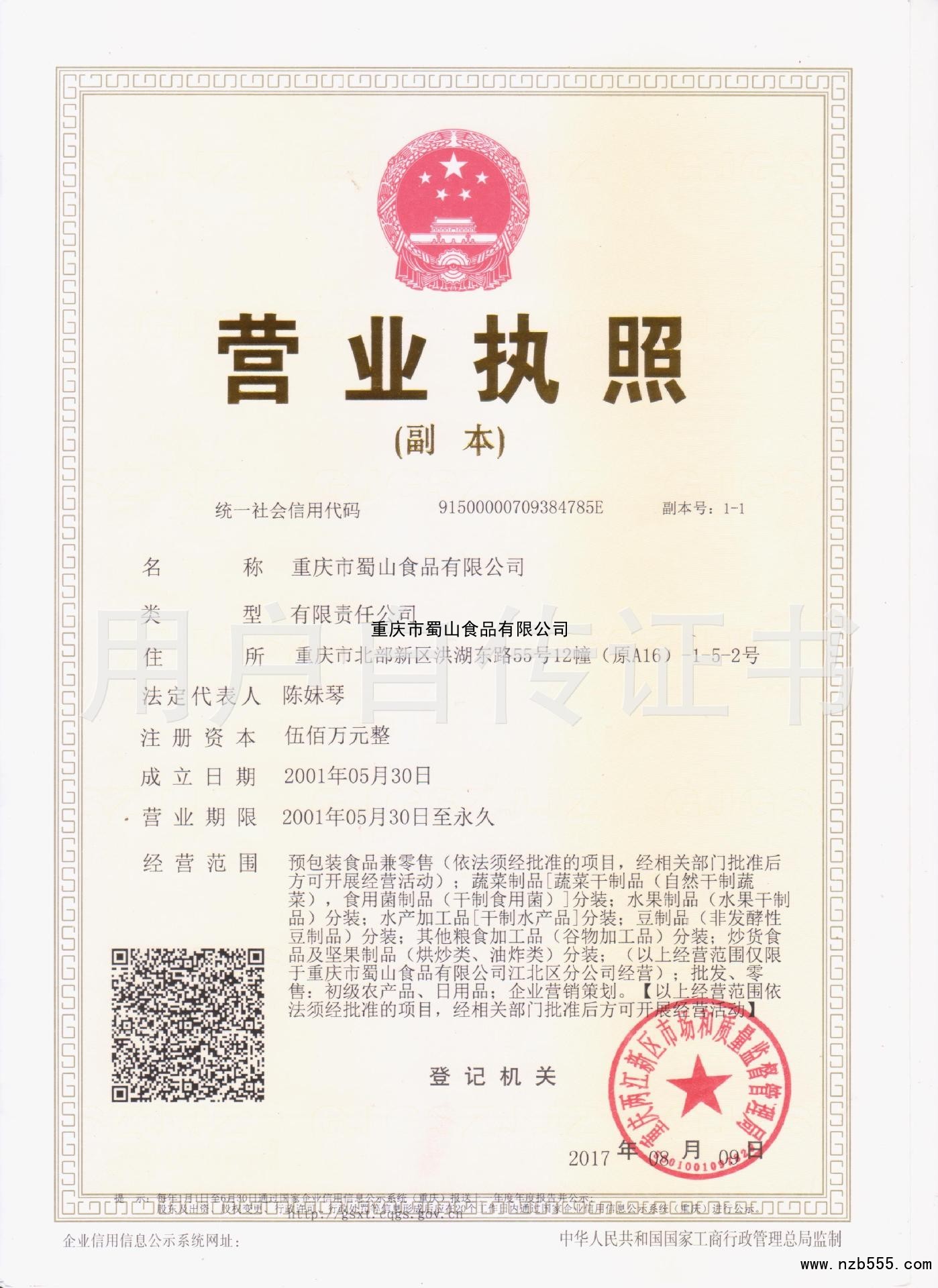 | 發(fā)證機(jī)構(gòu): | 重慶兩江新區(qū)市場和質(zhì)量監(jiān)督管理局 | 發(fā)證時間 : | 2017-08-09 |