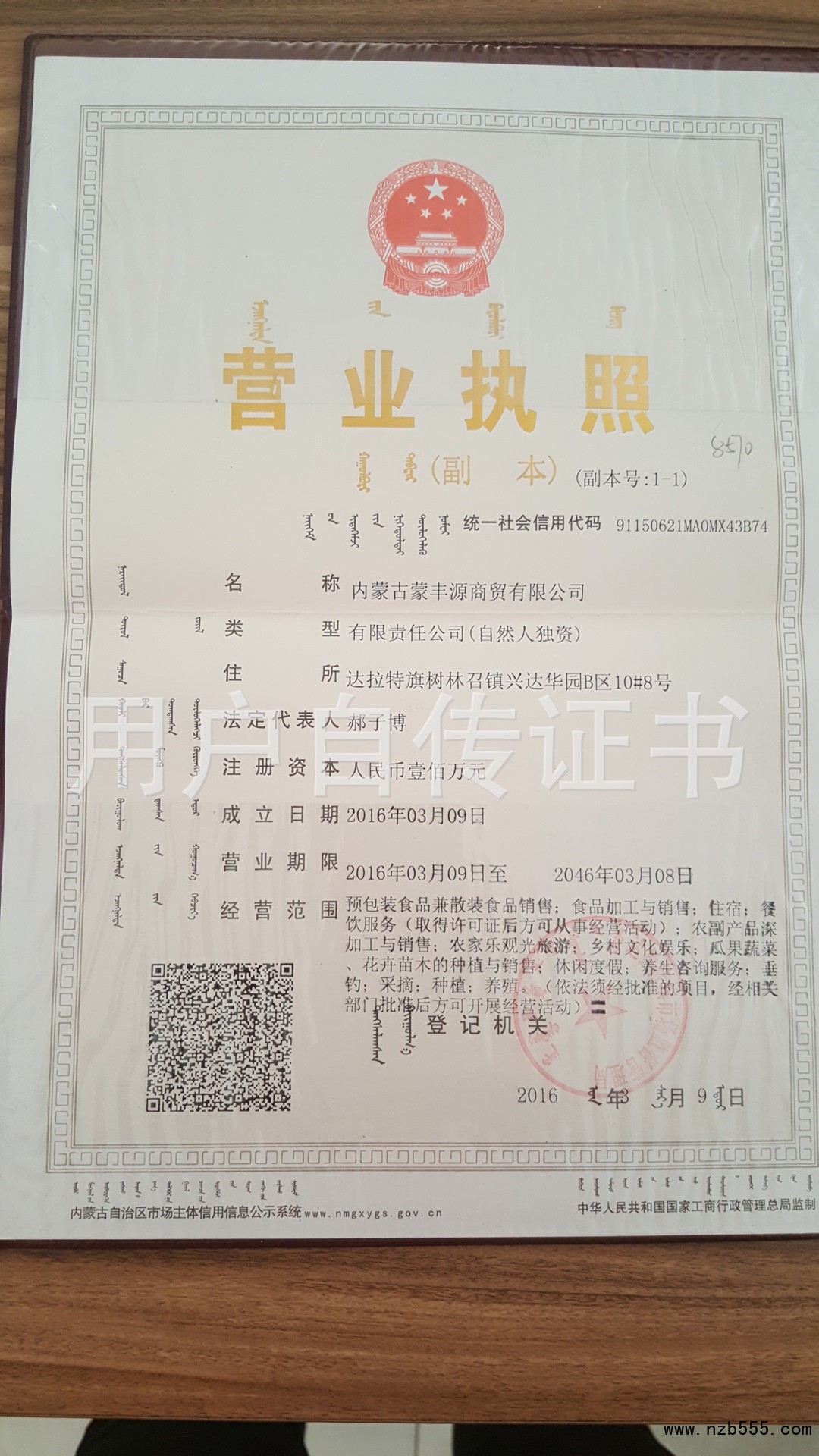 | 發(fā)證機(jī)構(gòu): | 達(dá)拉特旗市場(chǎng)監(jiān)督管理局 | 發(fā)證時(shí)間 : | 2016-03-09 |