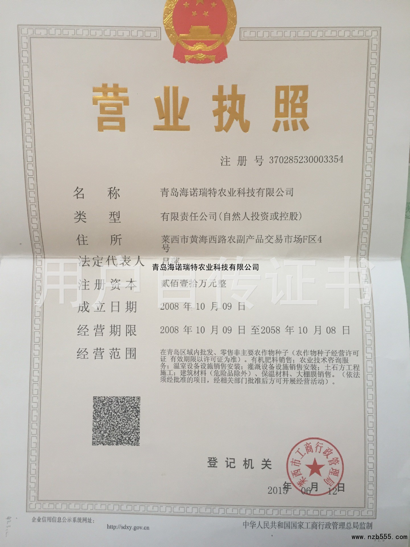 榮譽(yù)資質(zhì) 青島海諾瑞特農(nóng)業(yè)科技有限公司