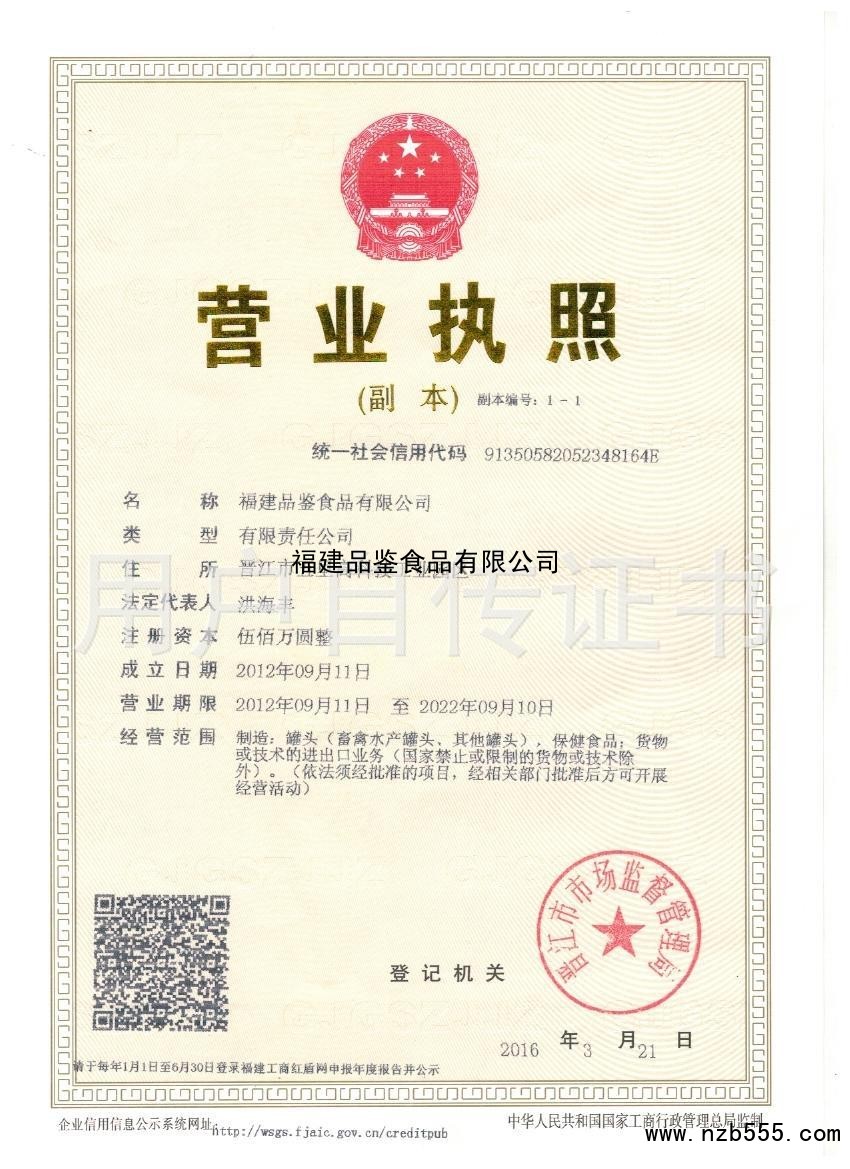 | 發(fā)證機(jī)構(gòu): | 晉江市市場(chǎng)監(jiān)督管理局 | 發(fā)證時(shí)間 : | 2016-03-21 |