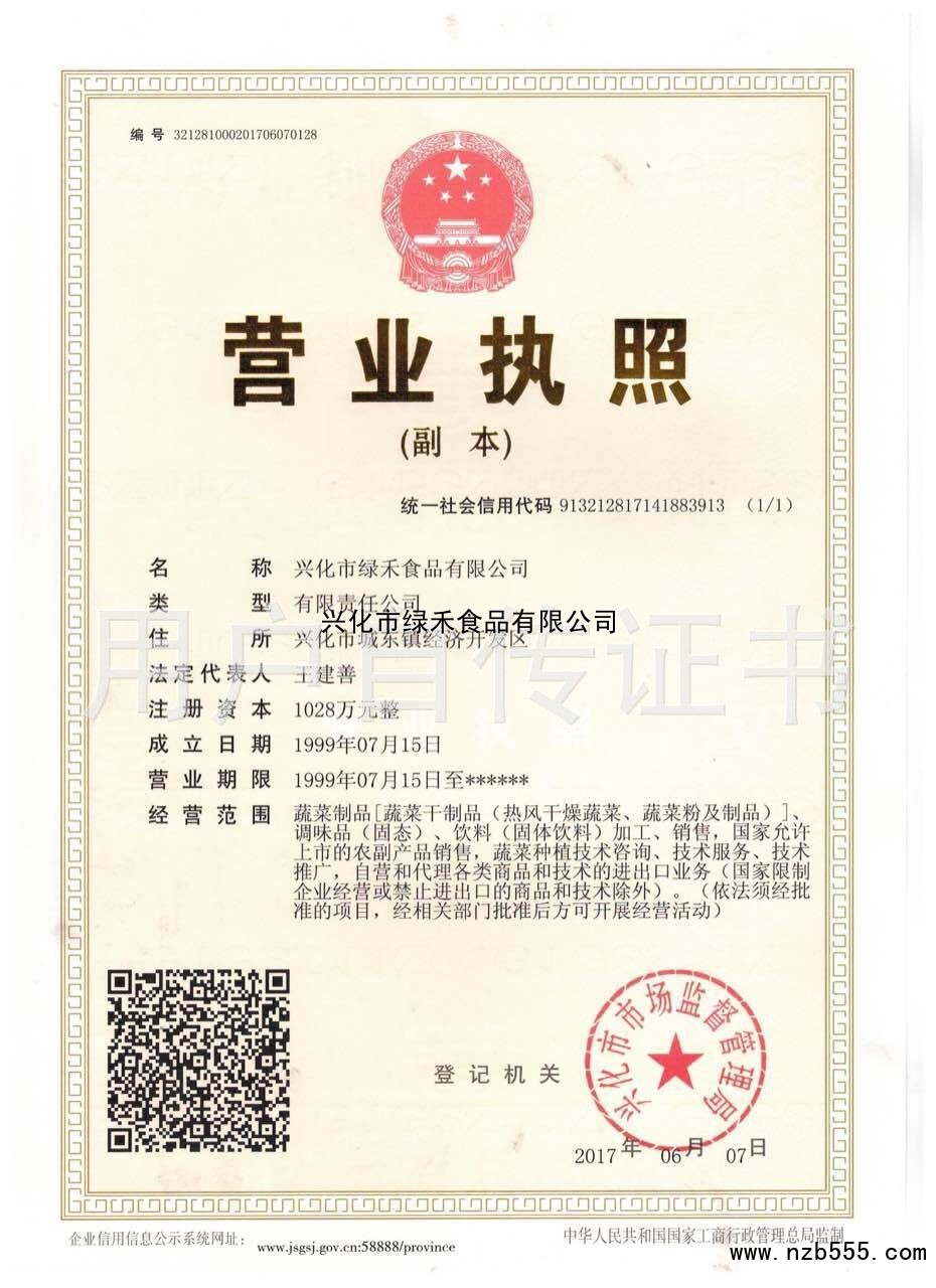 | 發(fā)證機(jī)構(gòu): | 興化市市場(chǎng)監(jiān)督管理局 | 發(fā)證時(shí)間 : | 2017-06-07 |