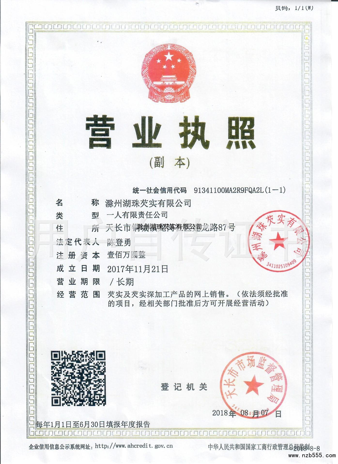 | 發(fā)證機(jī)構(gòu): | 天長(zhǎng)市市場(chǎng)監(jiān)督管理局 | 發(fā)證時(shí)間 : | 2018-08-07 |
