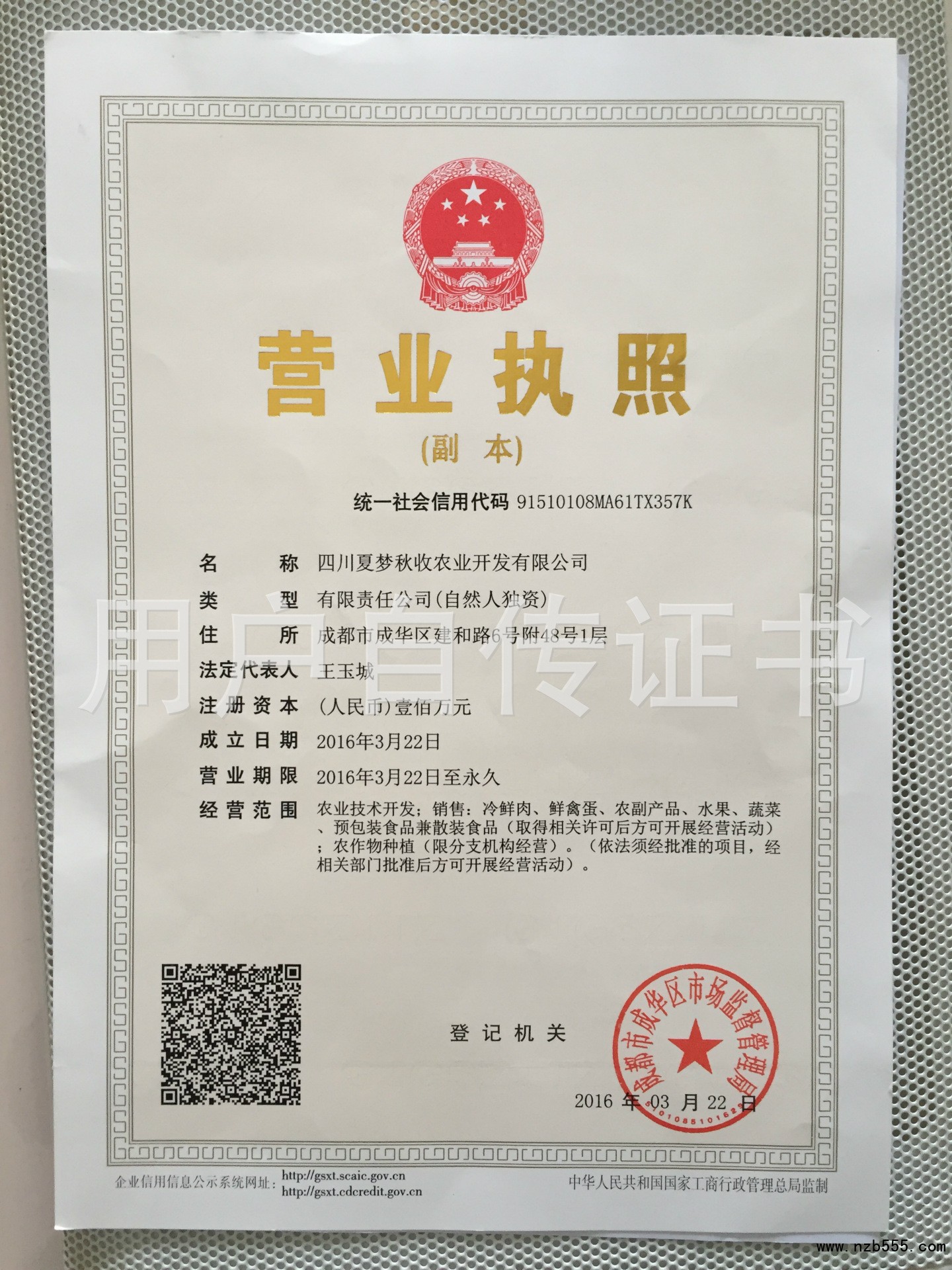 | 發(fā)證機(jī)構(gòu): | 成都市成華區(qū)市場(chǎng)監(jiān)督管理局 | 發(fā)證時(shí)間 : | 2016-03-22 |