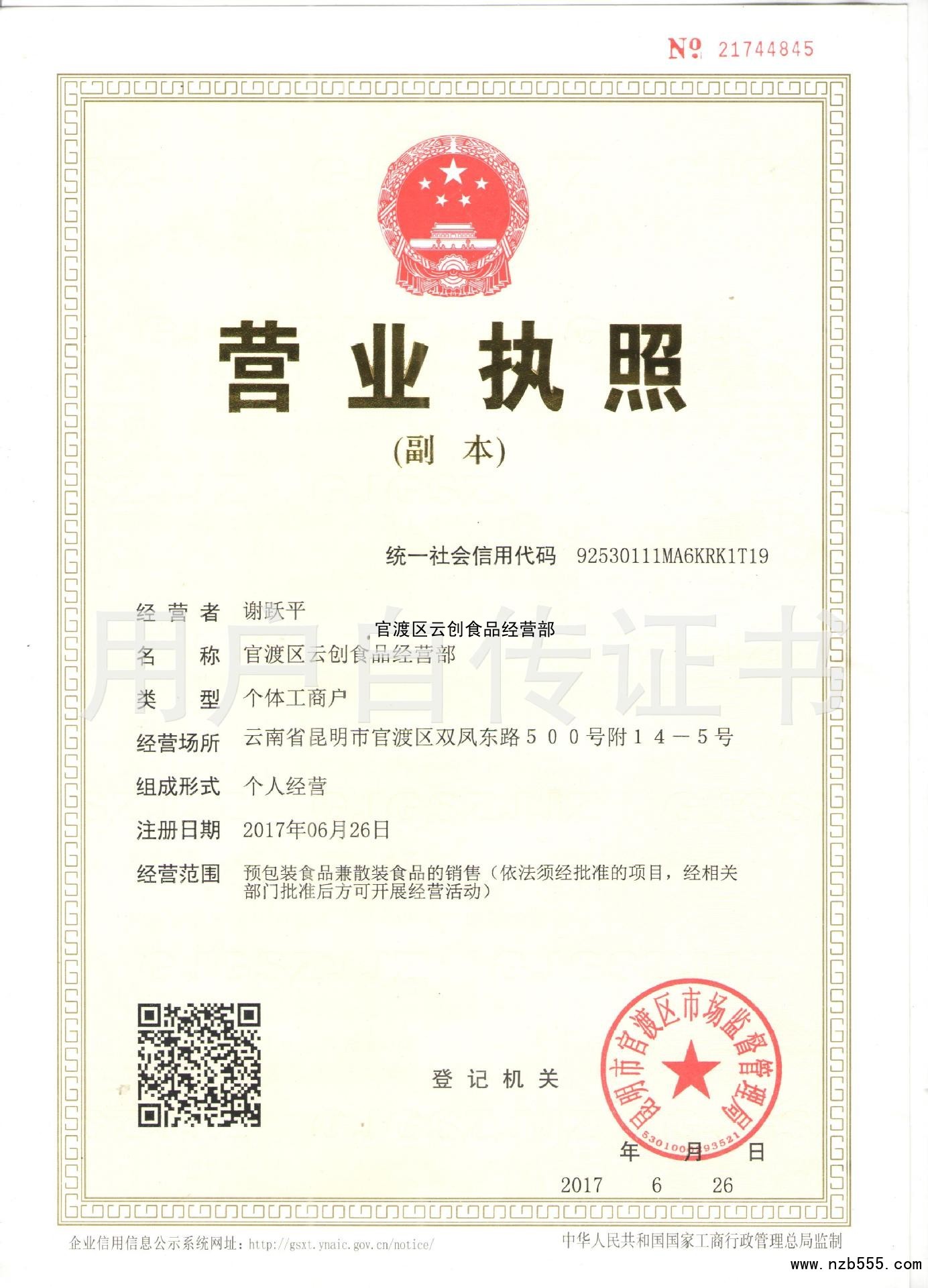 榮譽(yù)資質(zhì) 官渡區(qū)云創(chuàng)食品經(jīng)營(yíng)部