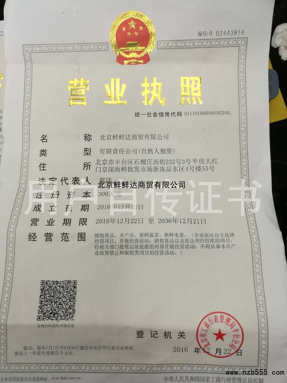 榮譽(yù)資質(zhì) 北京鮮鮮達(dá)商貿(mào)有限公司