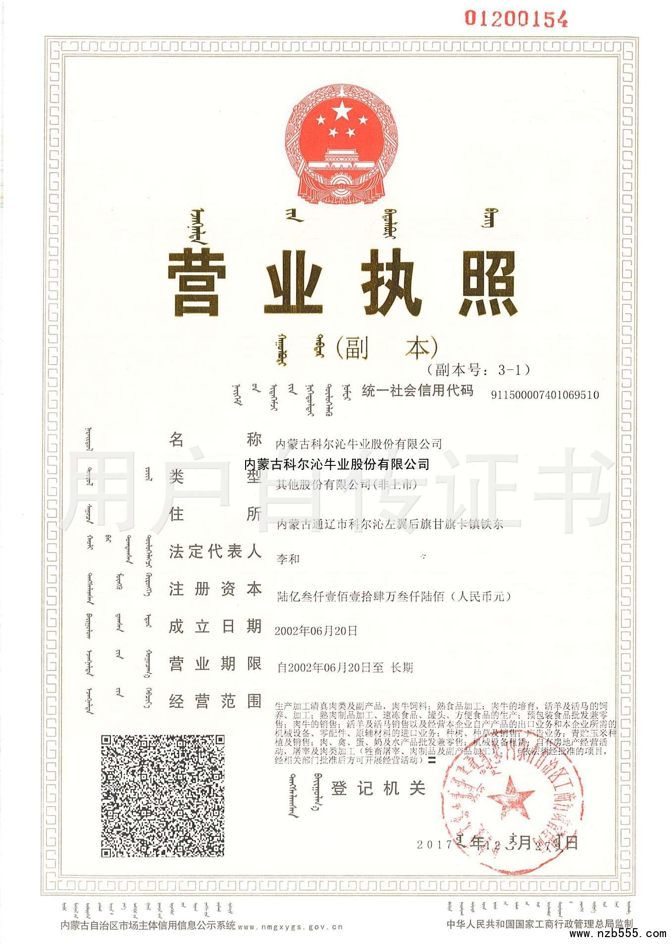 內(nèi)蒙古科爾沁牛業(yè)股份有限公司