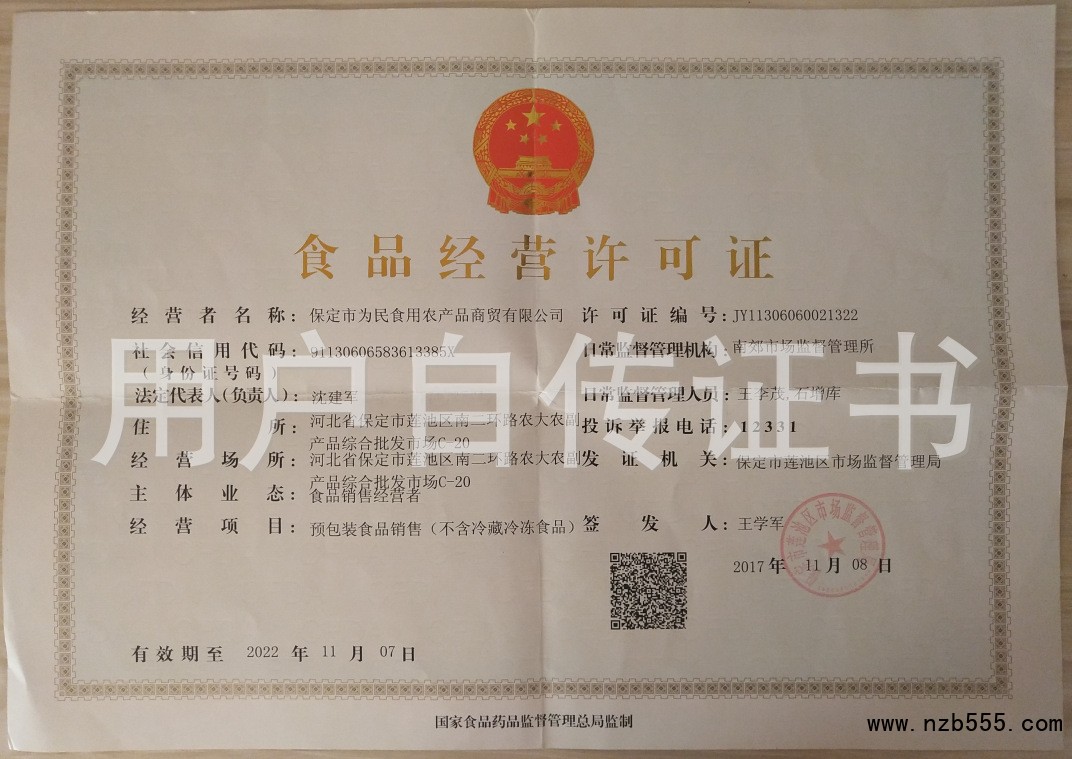 | 發(fā)證機(jī)構(gòu): | 保定市蓮池區(qū)市場監(jiān)督管理局 | 發(fā)證時(shí)間 : | 2017-11-08 |
