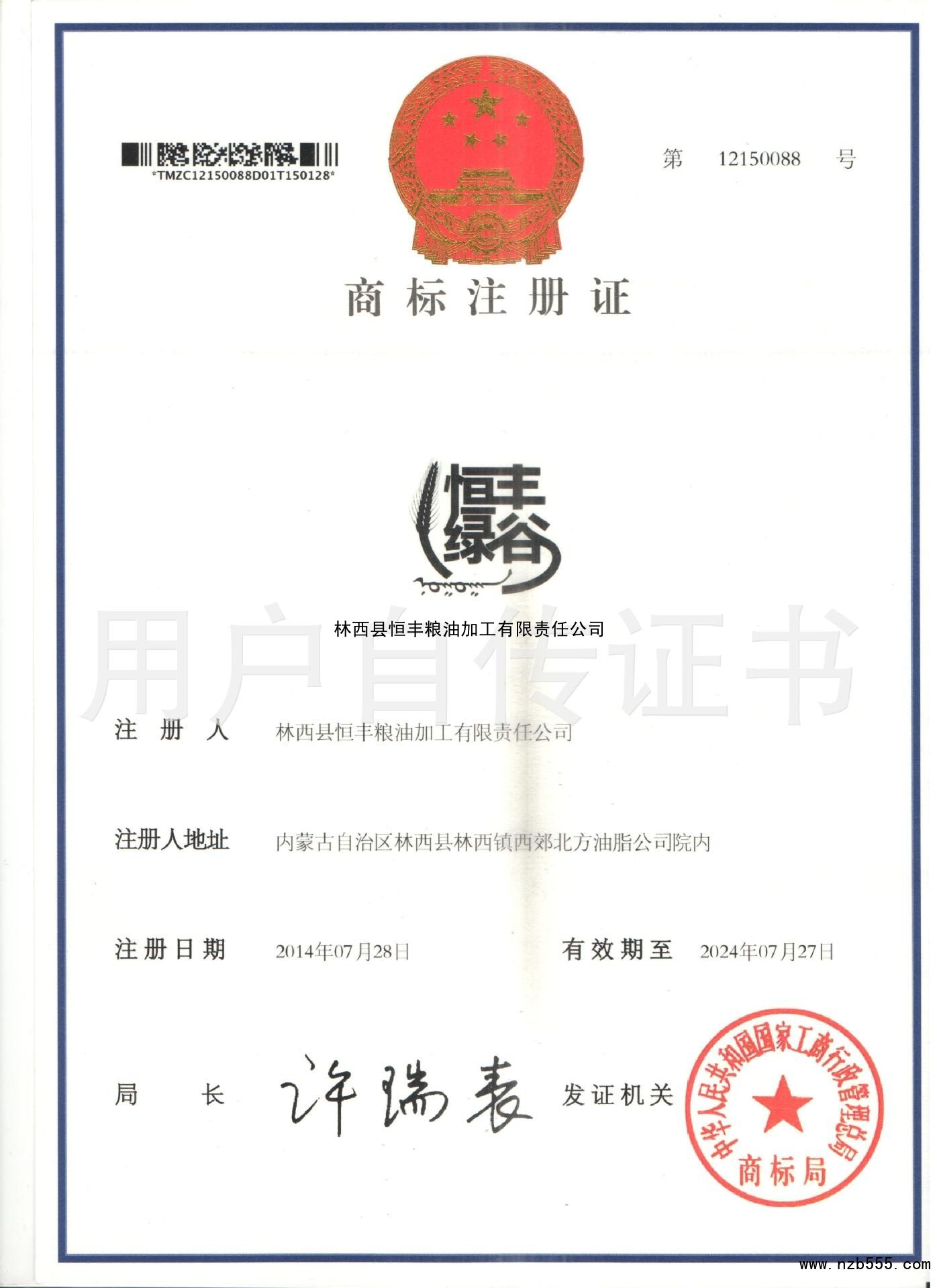 榮譽(yù)資質(zhì) 林西縣恒豐糧油加工有限責(zé)任公司