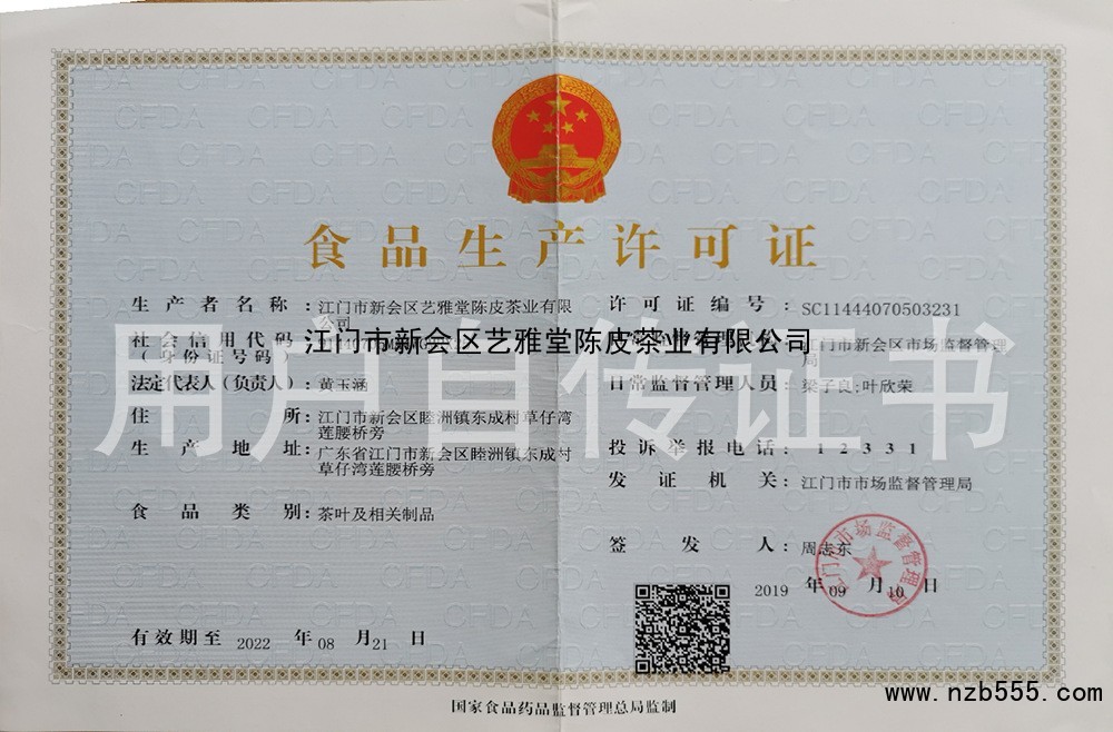 榮譽(yù)資質(zhì) 江門(mén)市新會(huì)區(qū)藝雅堂陳皮茶業(yè)有限公司