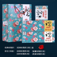 包裝規(guī)格玫瑰味2盒+手提袋,4味組合共2盒+手提袋,玫瑰味10枚/盒,4口味組合共10枚/盒