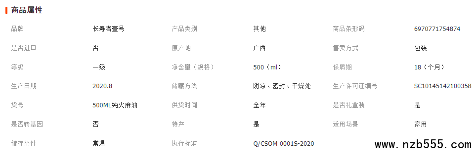 長壽者壹號火麻仁油食用巴馬初榨頭道純火麻油拌蜂蜜水家用500ML