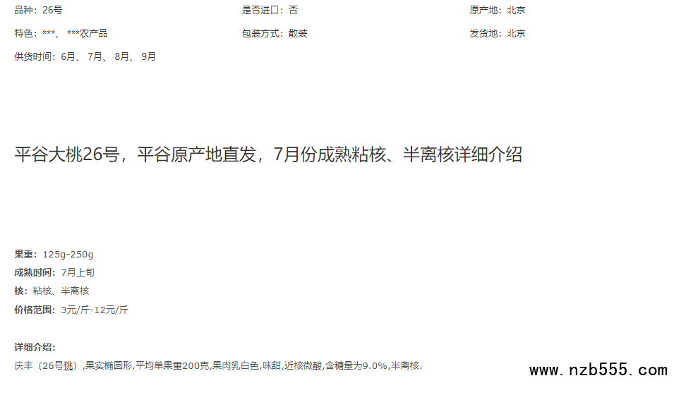 平谷大桃26號(hào),平谷原產(chǎn)地直發(fā),7月份成熟粘核、半離核