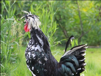 公雞外形:嘴黃、腳黃、皮黃;頭細、骨細;頭部大小適中,單冠直立鮮紅,冠尖5個或6個,肉垂發(fā)達鮮紅。頭、頸、背羽金黃色,胸腹和主翼羽烏黑色,肩鞍羽色棗紅,尾巴羽毛黑綠色。