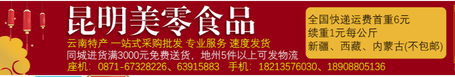 昆明美零食品 :主營云南特產(chǎn)、休閑食品、干果炒貨、散裝食品等暢銷產(chǎn)品,公司與多家零售商和代理商建立了長期穩(wěn)定的合作關(guān)系。 昆明美零食品,已有線下實(shí)體批發(fā)十余年經(jīng)驗(yàn),同19個廠家保持長期供應(yīng)合作關(guān)系,有省內(nèi)外長期合作商家近500余下位 [