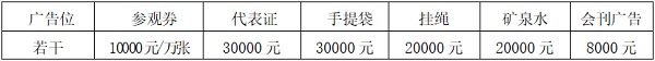 注:a.標準展位配備:洽談桌一張、折椅兩把、展位楣板、射燈兩個、220V插座一個、展位每日保潔、會刊登錄、展商證件、大會資料。b.豪華標準展位:在標準展位的基礎上展位加高1米,增配展柜或貨架一個,個性化門楣。c.光地展位:展商自行負責展位布置所需費用。 2、推薦廣告: