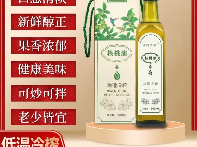 廠家批發(fā) 物理冷榨核桃油 食用油送嬰幼兒輔食譜500ml瓶子可貼牌