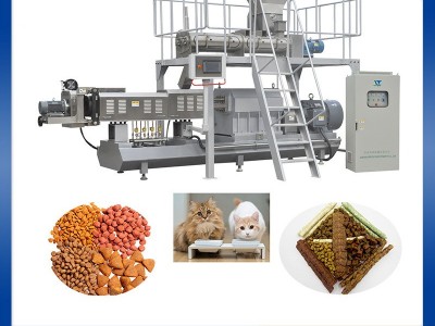 隨著寵物種類的不斷增加,市場對寵物食品的要求和需求也不斷提高。公司根據這一市場需要,研制和開發了多種型號的寵物食品生產線。寵物烘焙糧生產線擠壓機可適應多種原料,同時區別于傳統膨化糧,烘焙糧是通過常溫擠壓成形,不經過高溫膨化,從而鎖住營養成分保持蛋白原有屬性。使得產品內部氣孔減少,結構更加緊實,達到產品酥脆的效果。