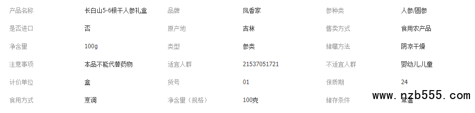 鳳香家長白山6-7根干人參100g 東北特產生曬參泡酒料白參人參禮盒