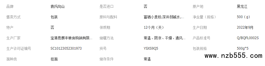 袁氏向山全麥富硒掛面500g*5紙包勁道面條